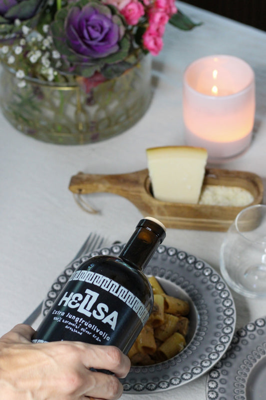 HELLSA är alltid single origin och aldrig utblandad. Vi vill hålla oljan så färsk som möjligt och bevara både smak och näringsämnen – därför pressar vi våra oliver inom timmar efter skörd och på så sätt får vi tex en låg syrahalt på olivoljan. Det är inte realistiskt att uppnå om man pressar i ett annat land än där oliverna skördats.